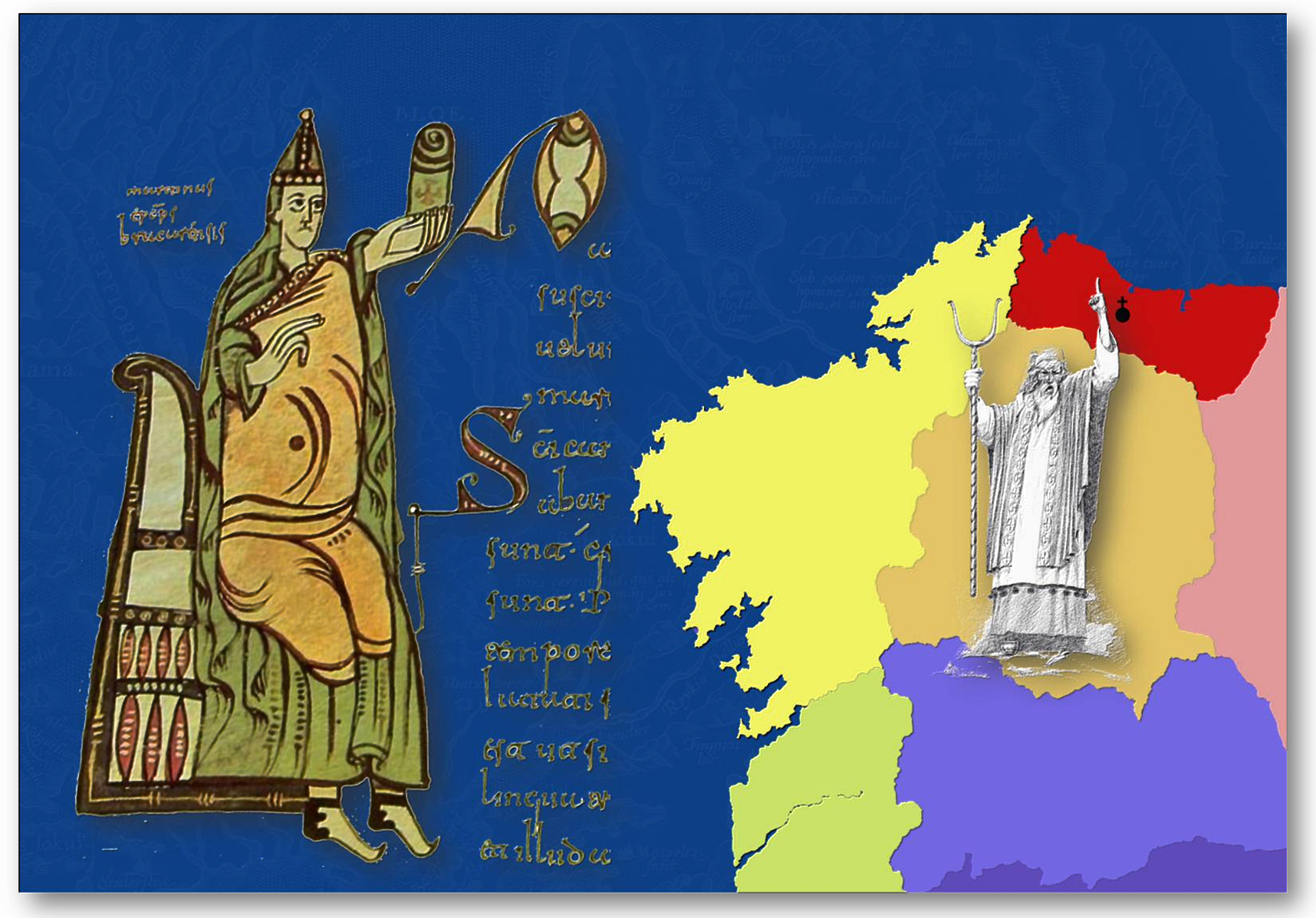Ilustrando James Carney o carácter dos primeiros bispos, sostén: Un ollav irlandés, “doutor [da igrexa, a.irl. ollam, epíteto de episcopus],bispo”, é moitas cousas para un rei ou príncipe; pero eu diría que, sobre todo, é a sombra dun sacerdote pagano de alto rango, ou druida. Cando Irlanda [-a comezos do século VI ,ou algo máis tarde (pouco antes da conversión de Teodomiro e a remodelación da igrexa galega por Martiño de Dumio no Primeiro Concilio de Lugo)-] que o 500 d.C. decidiu considerarse a si mesma como un pais plenamente cristián, emergió unha situación farto extrana: A orde dos druidas fora a base da sociedade irlandesa, e esa sociedade xa non podía prescindir dos druidas, do mesmo xeito que hoxe non podemos revogar a administración pública dunha plumada. Fíxose necesario chegar a un compromiso: os druidas faríanse cristiáns, a cambio de facerse cargo a Igrexa Cristiá de certo número das súas funcións. Pero a súa organización permaneceu intacta, acomodándose cada ollav dun determinado principado [treba, toudo] ao status dun bispo cristián, ou expresado de mellor modo, poñendo as cousas na súa debida orde: un bispo cristián asumiu o status dun sacerdote druídico de alto rango“. En The Irish Bardic Poet. Dublin (1967) 7; re ed. Dolmen Press 1985. Given as the Statutory Pûblic Lecture of the Celtic School do the Dublin Institute for Advanced Studies, 20 March 1958. // Exacta situação da Diocesis de Britonia, na Divisio Teodomiri [Concilium Lucensis anno 569]. Lugo ,agora metropolitana, Ourense, Astorga, Iria, Tui e Britonia facian parte das diócesis da Gallaecia Sueva, reorganizada polos bispos reunidos por orden do rei Teodomiro en dito concilio lucense [non figuran no mapa as outras do momento: Braga, Oporto, Lamego, Coimbra, Viseu, Dumio, Egitania.