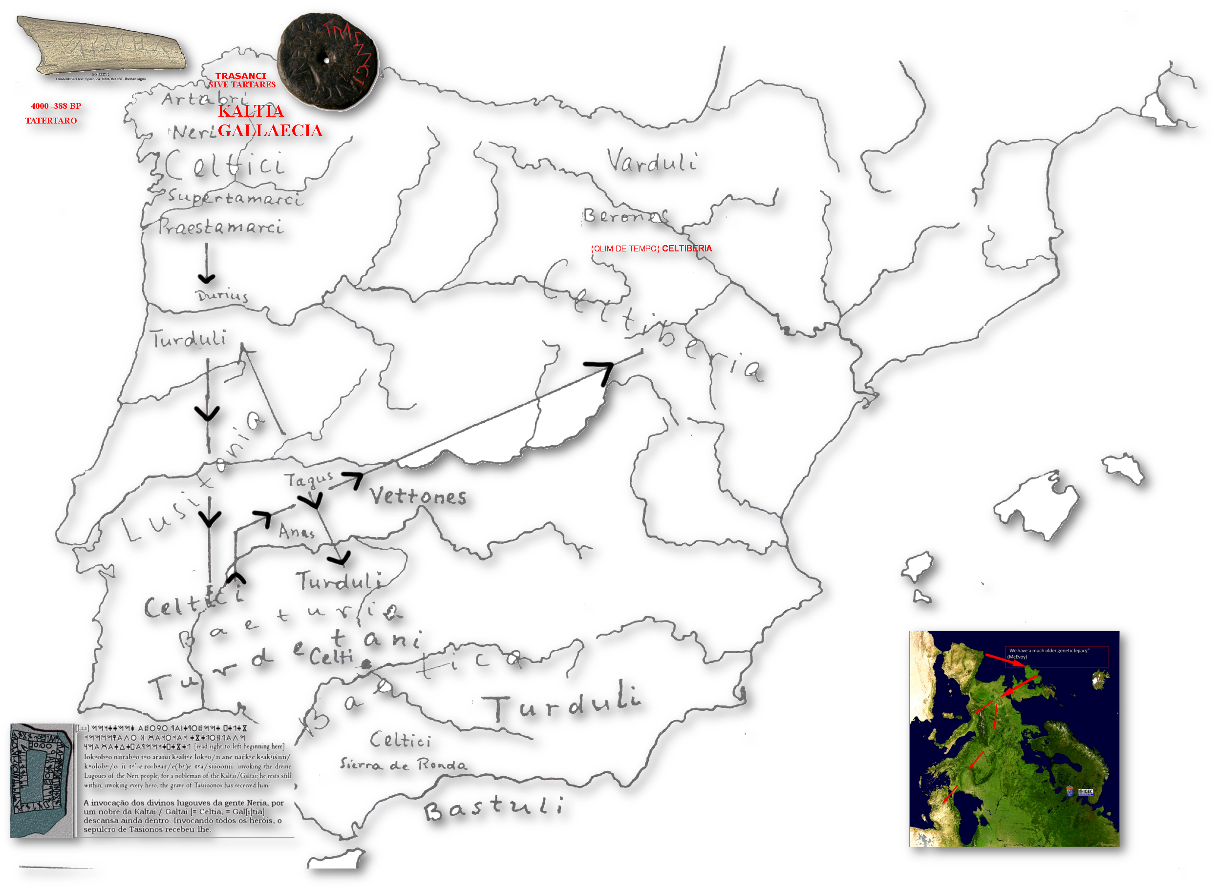 A breve cláusula da lousinha, em dat. s. Reve Trasanciuge [psblm. mellor lectio que Trasanciange] Reve [psvlm. tema en “a”, seguramente um epíteto da Mater, poblm. “Raising Moon, Ascensión da Lúa”] a lousinha contém, sem dúvida, o nome da Terra de Trasancos.O nome da nosa Terra conservado nesta pequena loseta achada por min en Santa Comba, Covas Ferrol, Trasancos é [en clave de PCP, Paradigma de Continuidade Paleolítica] moi antigo, e invariable nas linguas indoeuropeas; a voz, probablemente do Celta Antigo Común, ten a súa orixe nas rozas e decruas feitas para cultivar polos nosos primeiros agricultores. En claves de Xeografía Mítica e sagrada, pasaría a ser Tartares (por reduplicación de *trs, cf, a.irl. tart, “sede”), unha imágen do Tártaro: monasterio [S. Martiño de xuvia] vocitato Tartares ; orixinando posiblemente os nosos topónimos Inferniño, e Lamas do Inferno (onde hoxe está Alcampo). A prospósito do psb. radical de Trasancos: *Ters+ ancos [sendo -ancos un sufijo: Nem-ancos; Bes-ancos; Tras-ancos; Lapati-ancos, etc.,] *ters-, Radical de Trasancos, *Ters+ an+i+cos psvl. “os que queimam o monte para cultivar” [Pokorny 1078 (1870/47)] *ters-, idg., V., Sb.: nhd. trocknen, verdorren, dürsten, Durst; ne. dry (V.), thirst (N.); RB.: ind., iran., arm., gr., alb., ital., kelt., germ.; Hw.: s. *tr̥su-, *tr̥si̯ā, *tr̥sto-; W.: gr. τέρσεσθαι (térsesthai), V., trocken werden; W.: gr. τερσαίνειν (tersaínein), V., trocken machen, abtrocknen, abwischen; W.: s. gr. τρασιά (trasiá), tarsim̥ (tarsiá), F., Darre, Flechtwerk zum Trocknen; W.: s. lat. terra, F., Land, Erdboden; vgl. ae. fel-terr-e, sw. F. (n), Erdgalle (eine Pflanze); W.: lat. torrēre, V., dörren, braten, backen, rösten, sengen, versengen, entzünden; […] germ. *þarzjan, sw. V., trocknen, dörren; an. þerr-a, sw. V. (1), trocknen; W.: germ. *þarzjan, sw. V., trocknen, dörren; a.irl Tart “sede”. Cf. comparativamente Tartessos onde por queimar o monte quedarão sem portos e Tartares, Tártaro, etc.