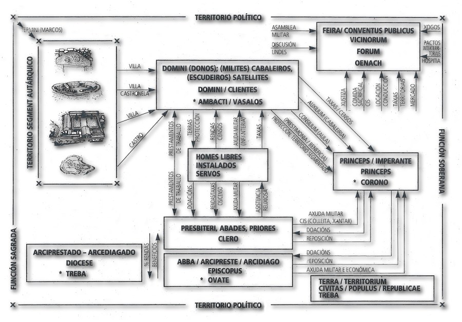 Since the dawn of the Bronze Age Celtic Europe is a mosaic of identical autonomous political territories we commonly call tribes and Romans called ciuitates / populi. Sharing a common structure, these tribes – as is Gallaecia- are known either in Europe (Pena 1992; Karl 2002) with words of domestic sovereignty: TREBA [TRIFU, TRIBE, etc.] and TOUDA [TEUTA, TOUTO, etc.] with a term alluding to the people, state or nation.