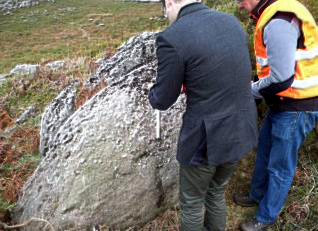 Ladeando en 1992 a publicación da mencionada obra irlandesa; Requerido un dia para ver uns restos e estructuras descubertos polo temporal nun cantíl en Covas, [inmediato ao santuario de Santa Comba e San Silvestre – santos herdeiros dun culto anterior, relacionado co solsticio de inverno; patróns das meigas-], con posterioridade a publicación deste segundo volume: achei a lousiña [coa reseñable particularidade, de brillar como o ouro na agua], furada como unha fusaioa, co epígrafe dedicado a á Deusa Nai, [B/V] REVE TRASANCI-AVGE?/ANIGE? . REBE/REVE epíteto en dat. s. a Re-ve “lúa ascendente”, [cf, comparativamente, o irlandés Re, “Lua”, e Lan na Re “Lua Chea”, Re-va langa psbl. “Ascensión da Lúa Chea”] TRASANCI-AVGE?/ANIGE? da Terra/Terriña de Trasancos. Catalogouse no lugar un castro destruido polo mar, e un centro monástico altomenieval de monxes celtas [berço la lenda da chegada dos tres Vi Corra], previo á actual capela orientada non ao sol, senón como a Pena Molexa próxima, cousa singular, á Lua, que foi igrexa parroquial con camposanto durante toda a Idade Media. A Ínsua do Medio non existia no século XII, e non se debe confundir coa, psbl. tamén lunar [vogalismo e/i] Insula Selina, que Tructino (a. 868) menciona na Terra de Cedeira.