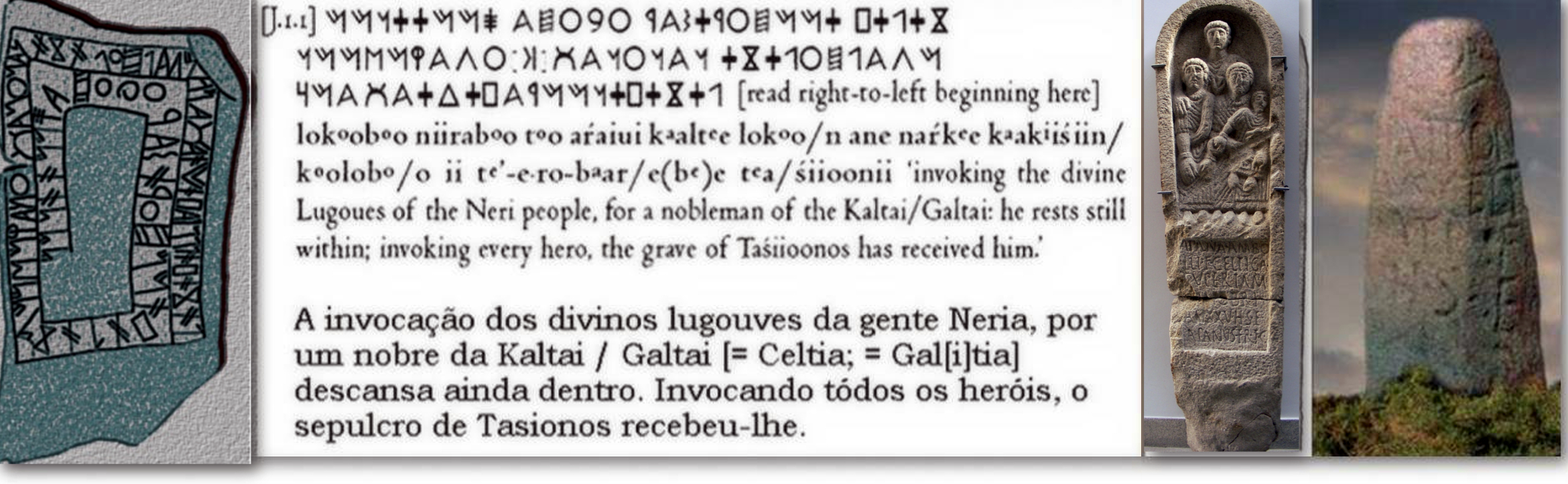 Como tinha demonstrado Eulogio Losada Badía-, falado no atlântico europeu, agora decifrado por J. T. Coch, o vocábulo Laco/ Lago, Lagoa, Lago, Lagoela e derivados, assinala que alude a uma mámoa, ou a um túmulo, em celta antigo comúm tartésico: lokoon, significam ‘tumba moimento funerário, como o cisalpino lokan ‘tumba’, podendo provir do *indo-europeu *legh- “jazer”, sendo seu registro mais antigo a inscrição do Tasionos, galaico Nerio com um impressionante currículum pois não contente com dizer que ele é o primeiro ario documentado dá História (não se assustem, ari significa “nobre” – se os nazistas levantassem a cabeça!-, proclama também ser ele o primeiro herói celta, excingos, de Fisterra da Kaltia ou Galtia, isto é Galiza! O berço dos Celtas da Europa Atlântica.