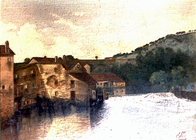 Reais Fábricas de Fariña e complexo industrial de Lestache do S. XVIII, en Xuvia. Narón [Pintura da Familia Barcón]